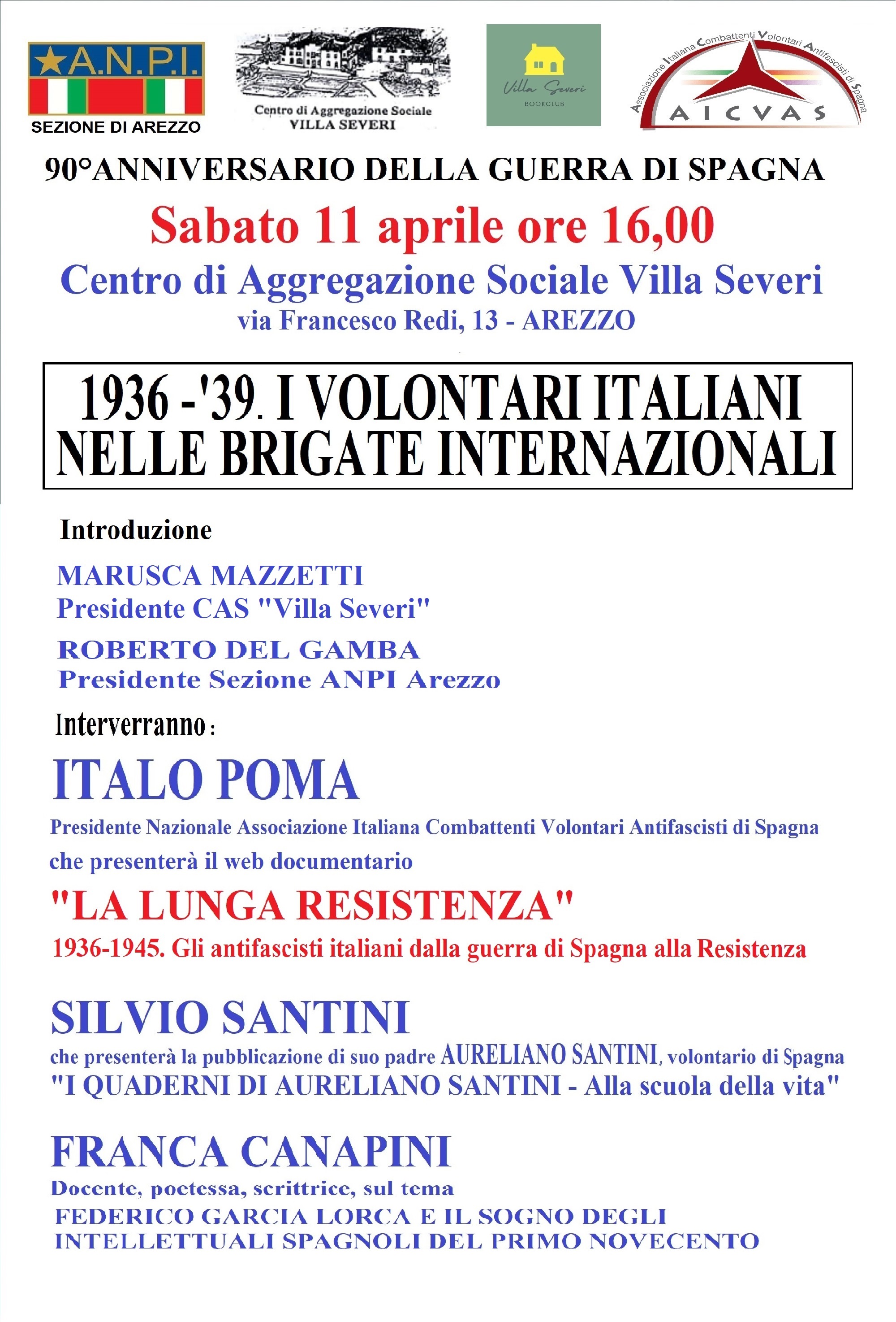 ore 16:00 - Centro di Aggregazione Sociale Villa Severi, via Francesco Redi 13 - Arezzo