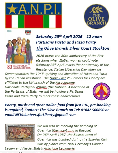 The 25th April marks the anniversary of the Liberation of Italy from fascism - Italian Liberation Day. The North East Volunteers for Liberty working with the Associazione Nazionale Partigiani d'Italia (ANPI UK) will be celebrating this significant anniversary.