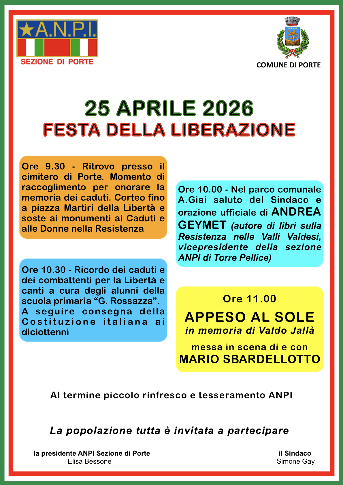 Festa della Liberazione organizzata dalla Sezione ANPI di Porte in collaborazione con il Comune