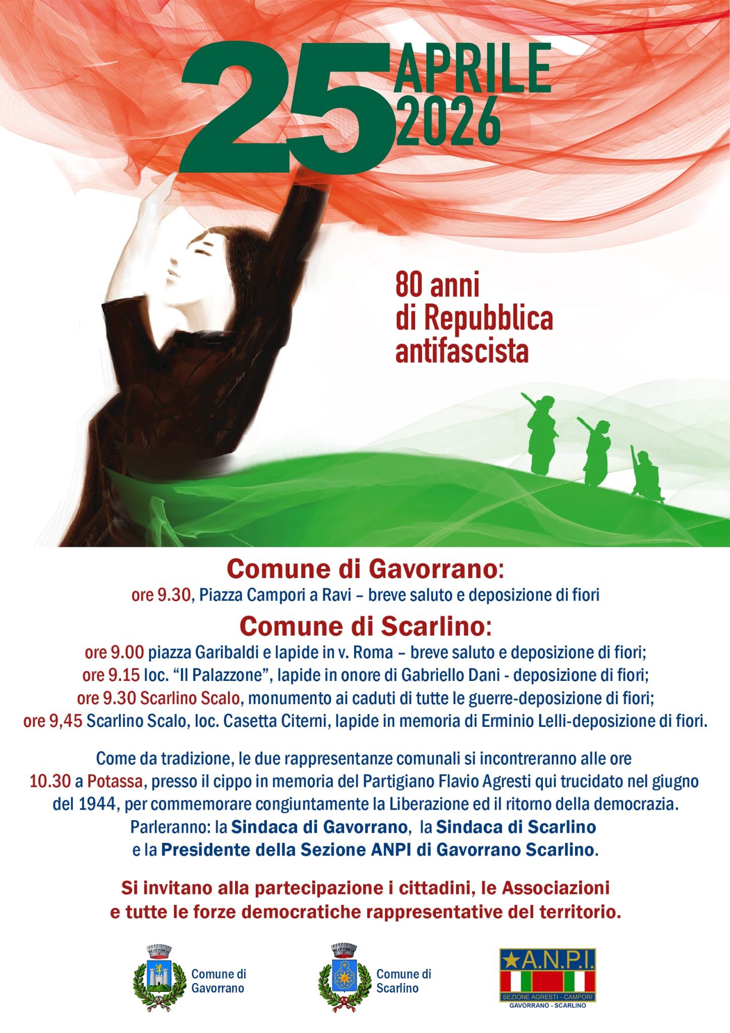 ore 9.00 piazza Garibaldi e lapide in v. Roma - breve saluto e deposizione di fiori;
