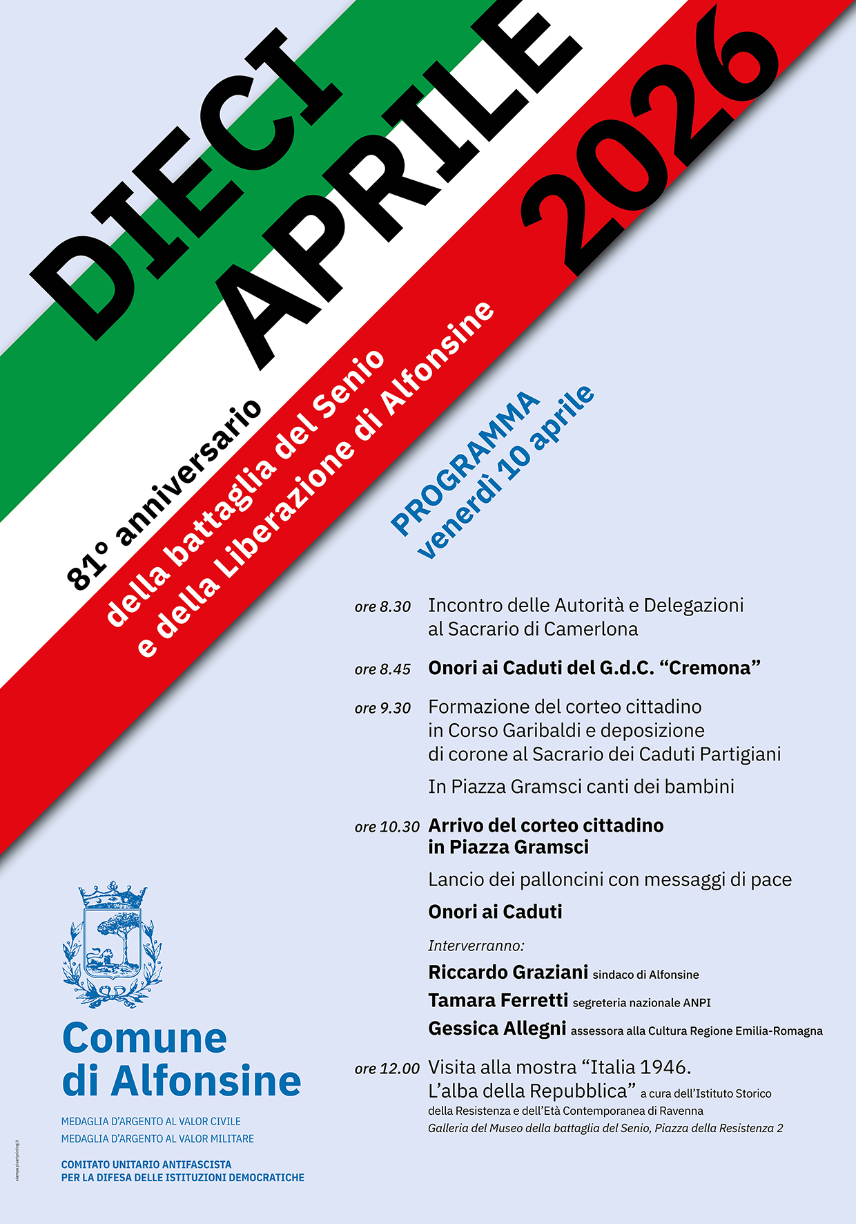 Celebrazione dell'81° anniversario della Liberazione di Alfonsine dall’occupazione nazifascista e della nascita delle Istituzioni democratiche