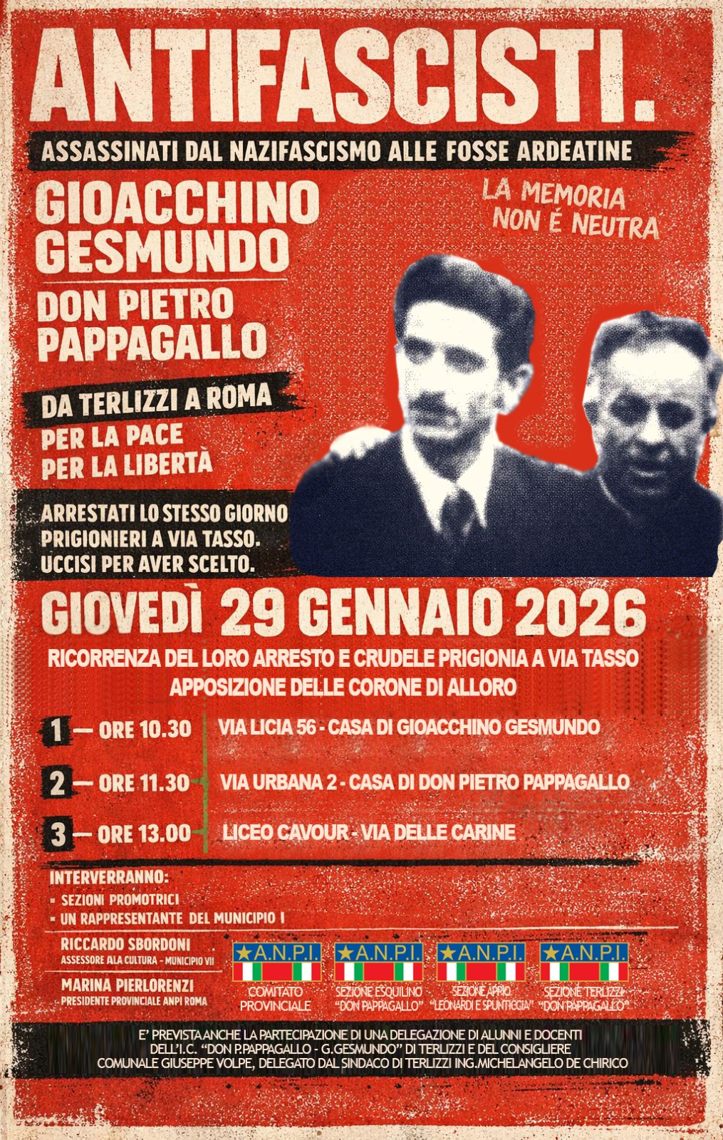 Ricorrenza del loro arresto e crudele prigionia a Via Tasso