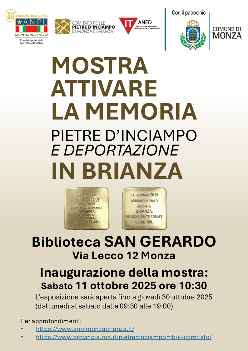 che illustra, nei suoi 19 pannelli, i diversi aspetti della deportazione nazifascista avvenuta in Brianza e nei confronti dei propri cittadini. È frutto di un lavoro di ricerca durato oltre sei anni, operato dal Comitato per le Pietre d’Inciampo Monza e Brianza; l’obiettivo è quello di raccontare in forma divulgativa quanto sia avvenuto ai danni di cittadini ebrei, di operai, oppositori e partigiani ed infine dei militi del Regio Esercito che, dopo l’armistizio dell’8 settembre 1943 e l’occupazione tedesca, rifiutarono di confluire nelle loro schiere.