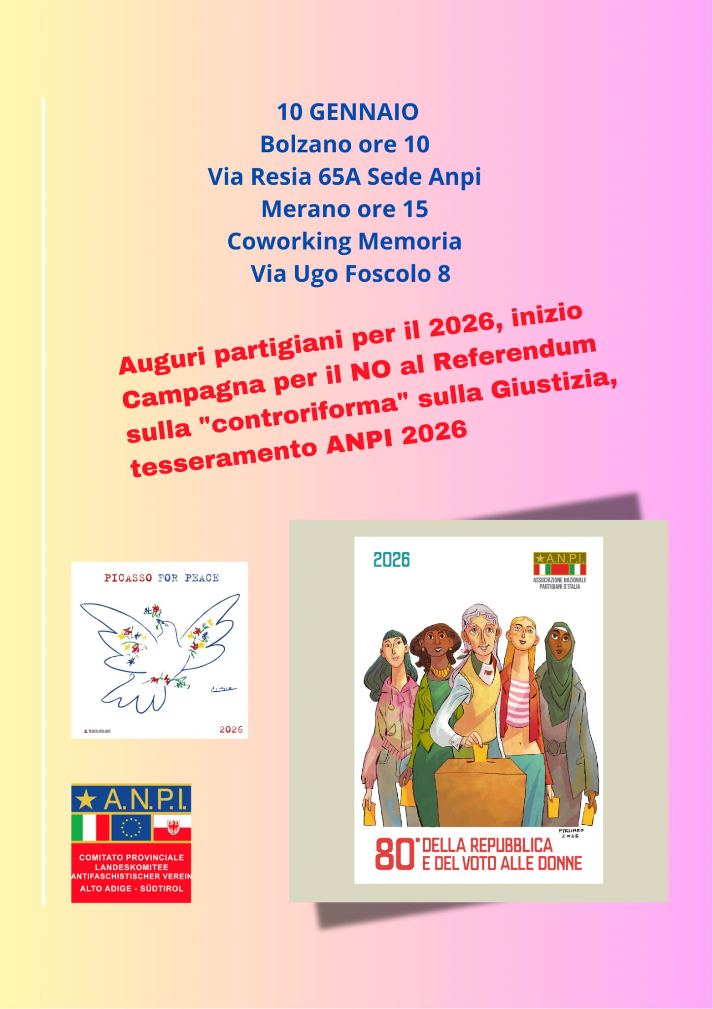 - Bolzano alle ore 10.30 sede ANPI Via Resia 65/A