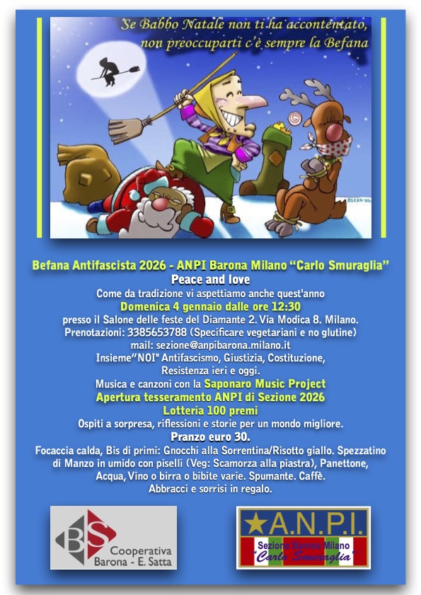 Musica e canzoni, Lotteria, Apertura tesseramento ANPI di Sezione 2026, Ospiti a sorpresa, riflessioni e storie per un mondo migliore