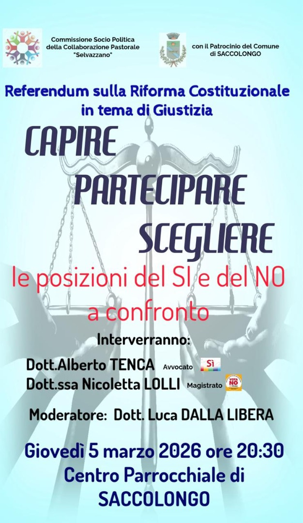 ore 20:30 - Centro Parrocchiale di Saccolongo