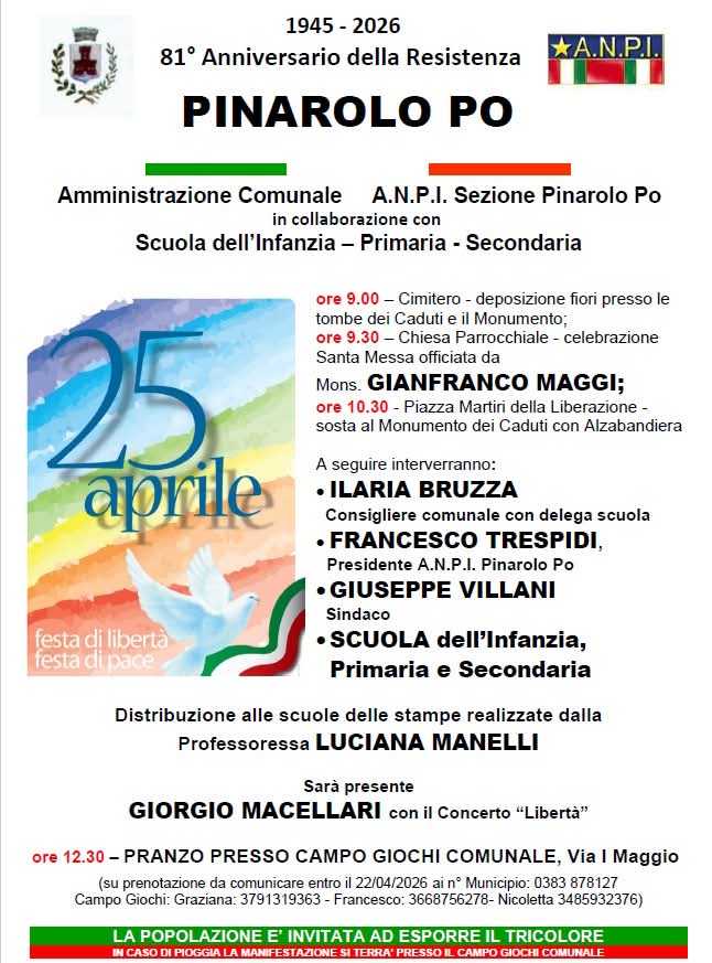 Celebrazione 25 aprile a Pinarolo Po