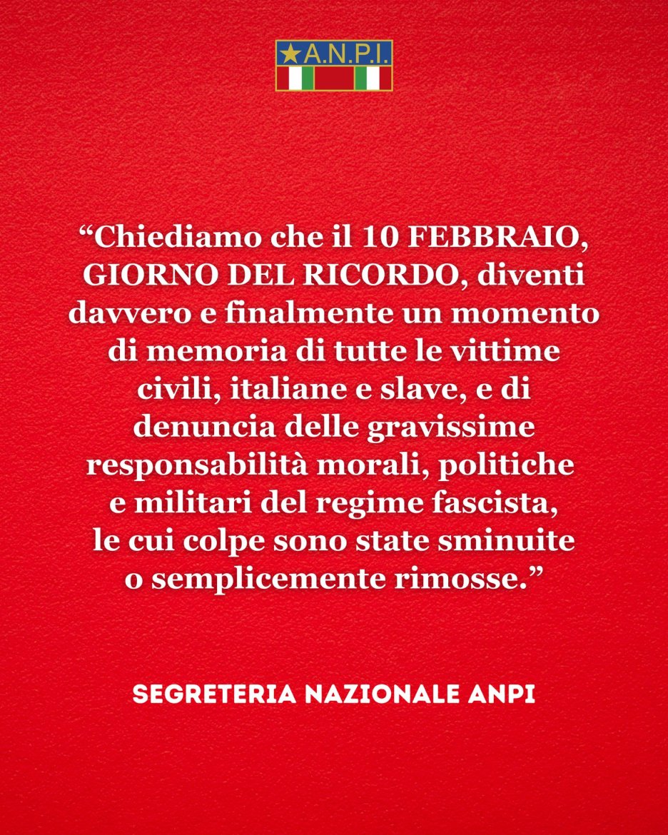 "Rivolgiamo un appello alle istituzioni perché le celebrazioni del 10 febbraio, Giorno del Ricordo, si svolgano nel rispetto della verità storica e della legge, con sobrietà, rigore e completezza, senza alcuna faziosità.