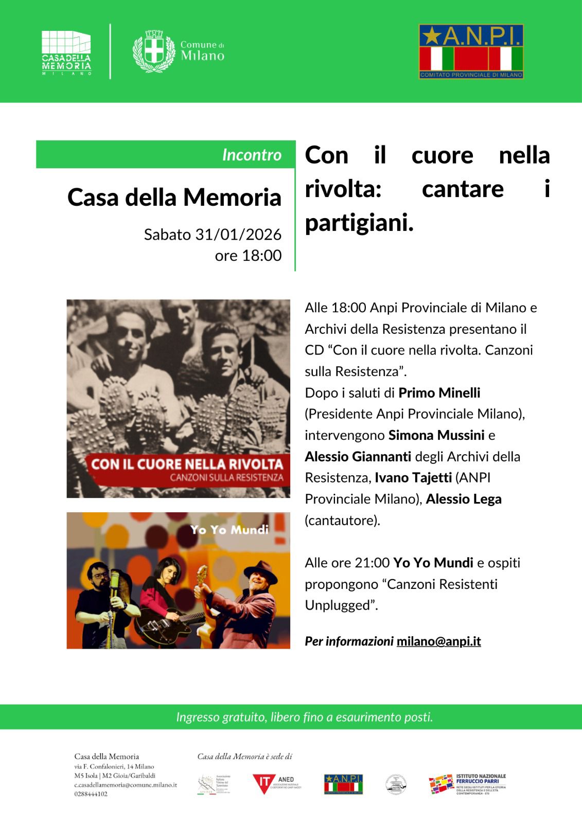 ANPI provinciale di Milano e Archivi della Resistenza presentano il CD "Con il cuore nella rivolta. Canzoni sulla Resistenza"