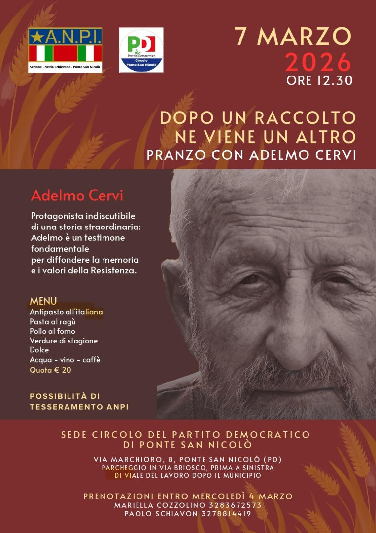 ore 12:30 - Sede Circolo del Partito Democratico di Ponte San Nicolò, via Marchioro 8