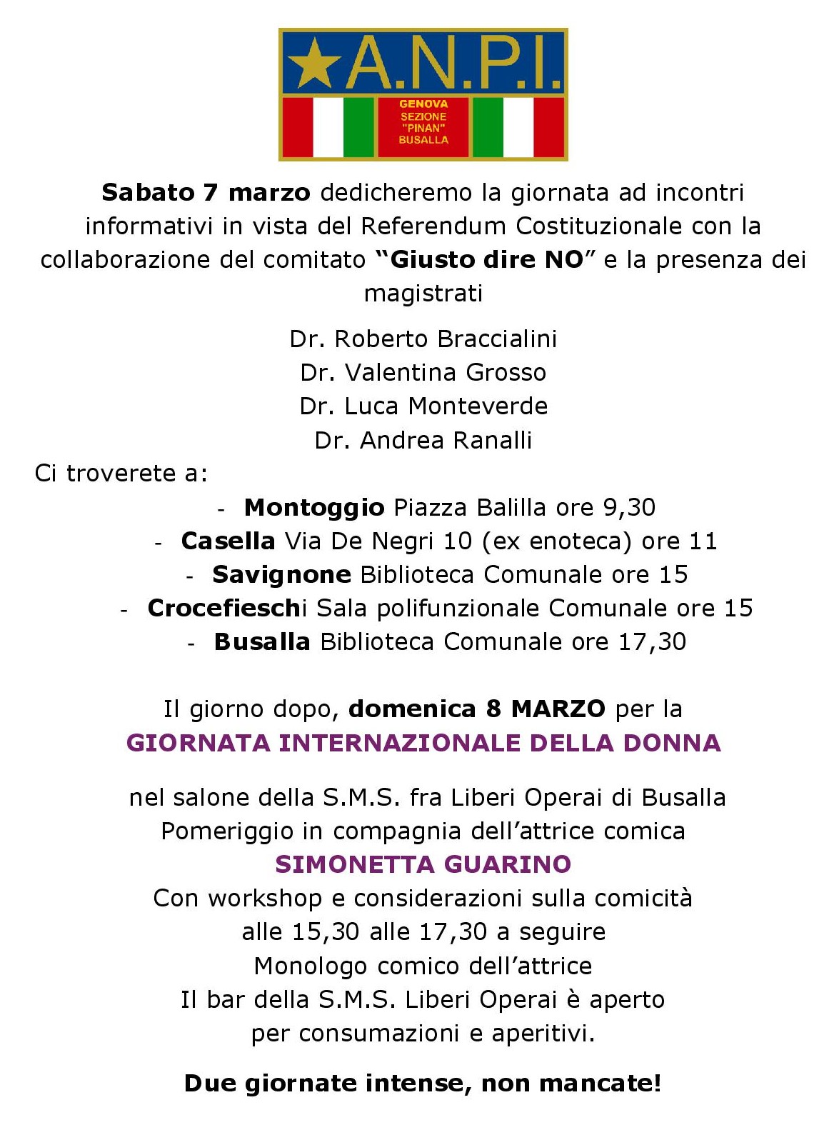 Due iniziative della Sezione ANPI di Busalla "Pinan"