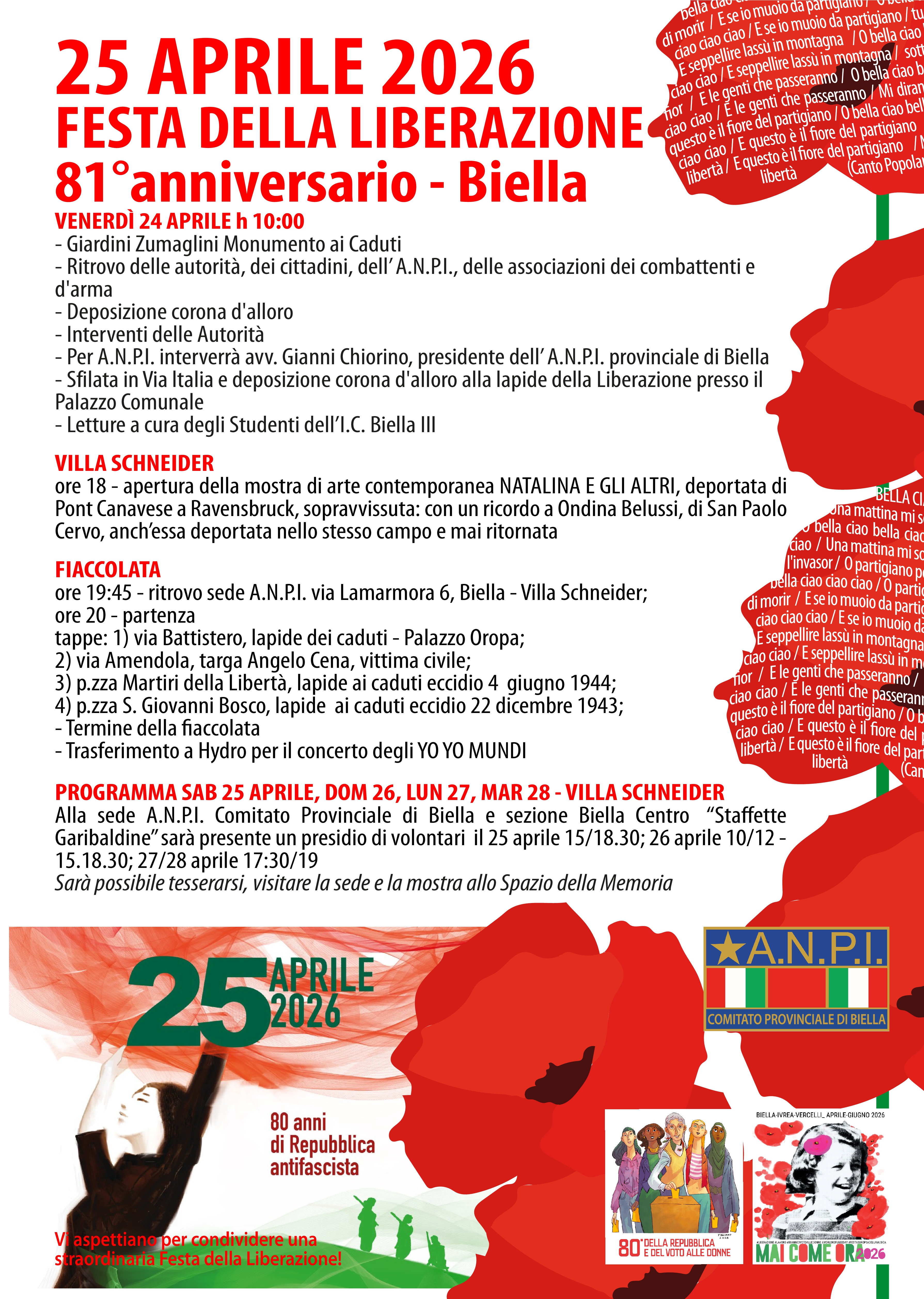 - Per ANPI interverrà avv. Gianni Chiorino, presidente dell' ANPI provinciale di Biella