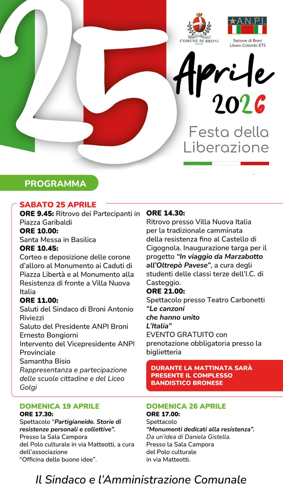 Programma delle celebrazione per il 25 aprile e altre iniziative a Broni