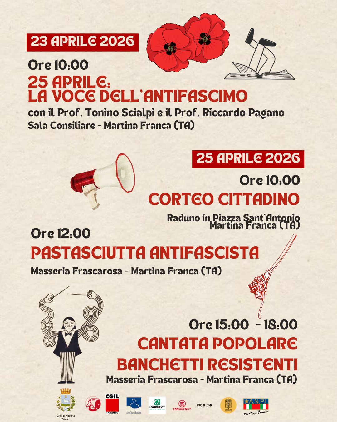 ore 10.00 - Sala Consiliare: INCONTRO PUBBLICO "25 aprile: la voce dell'Antifascismo" dialogano il prof. Antonio Scialpi e il prof. Riccardo Pagano;
