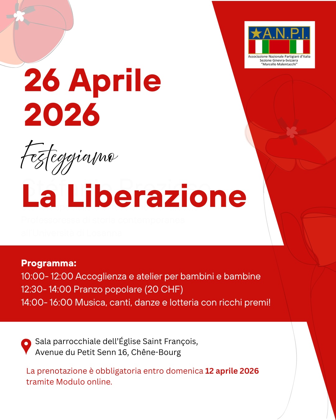 • 12:30 – 14:00 pranzo popolare (20 CHF)