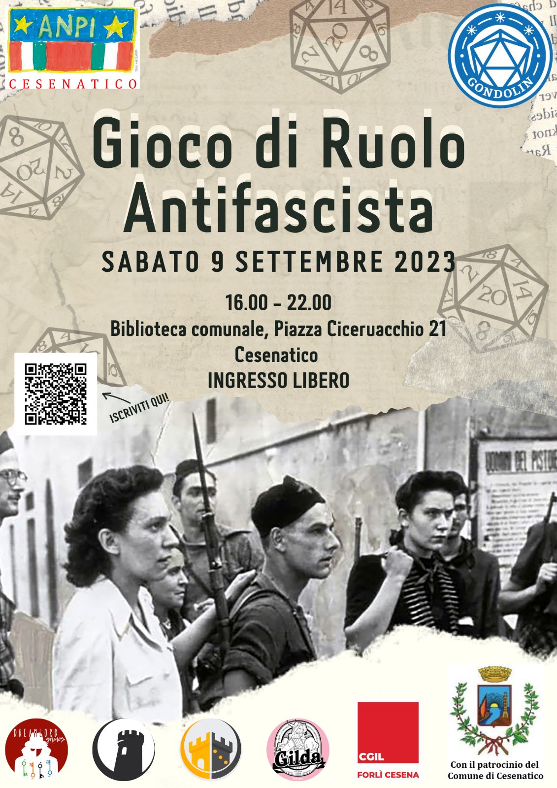 Per rigettare ogni forma di fascismo anche negli ambienti ludici, Gondolin APS e ANPI Cesenatico presentano un evento di GIOCO DI RUOLO ANTIFASCISTA!