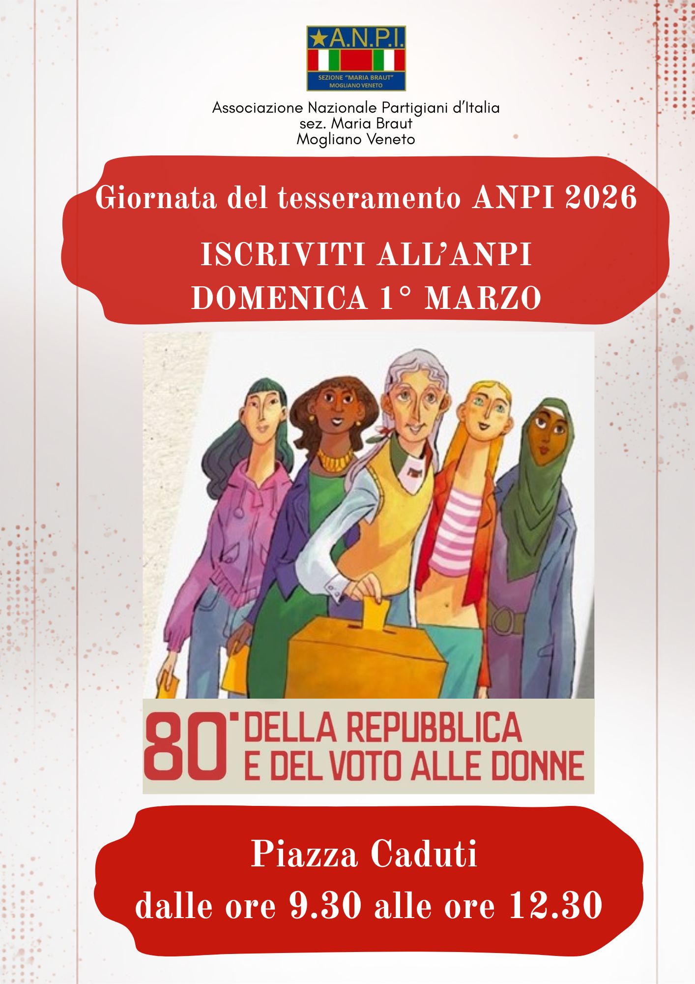 Eventi Giornata del tesseramento a Mogliano Veneto 01 Marzo 2026 Treviso Domenica 1° marzo in Piazza Caduti dalle ore 9.30 alle ore 12.30 Allegati Locandina (429.83 KB)