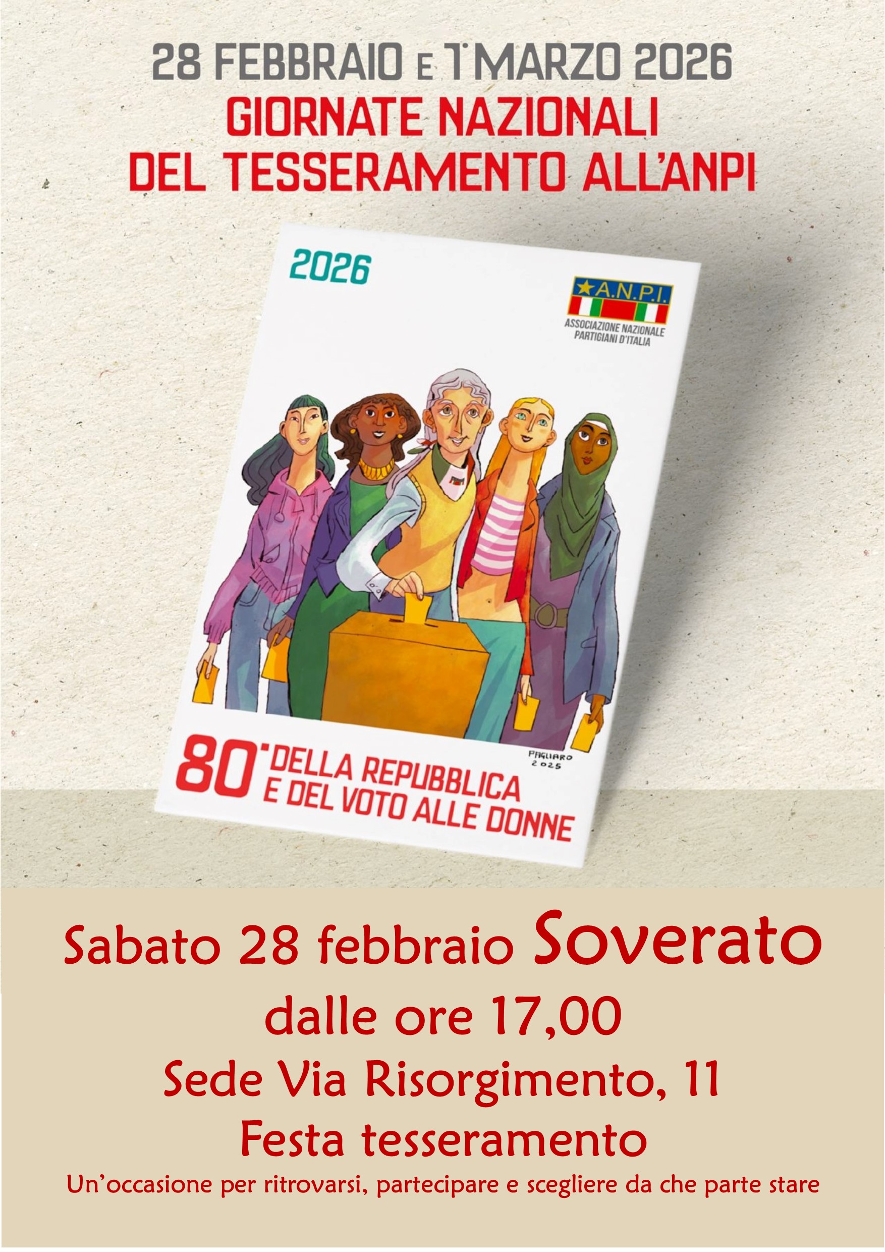Sabato 28 febbraio 2026 - dalle ore 17:00 presso la sede ANPI in via Risorgimento 11 - Soverato