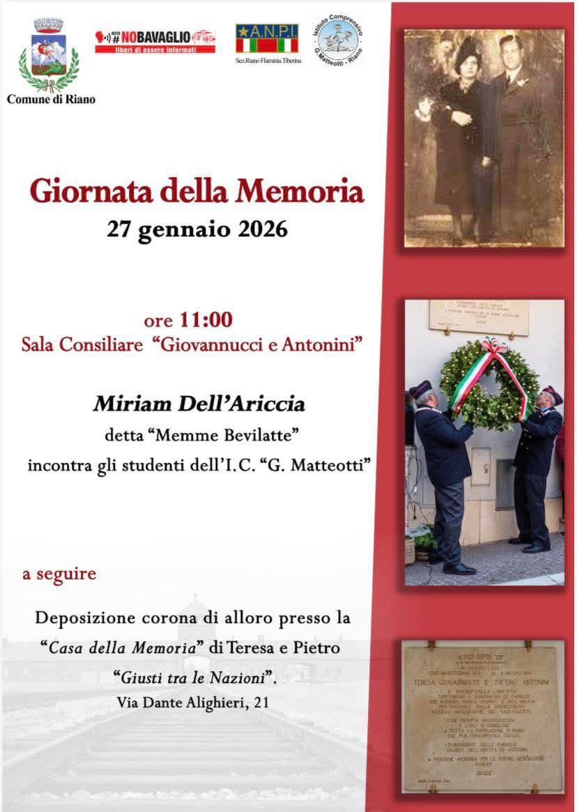 deposizione corona d'alloro presso la "Casa della Memoria" di Teresa e Pietro "Giusti tra le Nazioni", via Dante Alighieri 21 - Riano