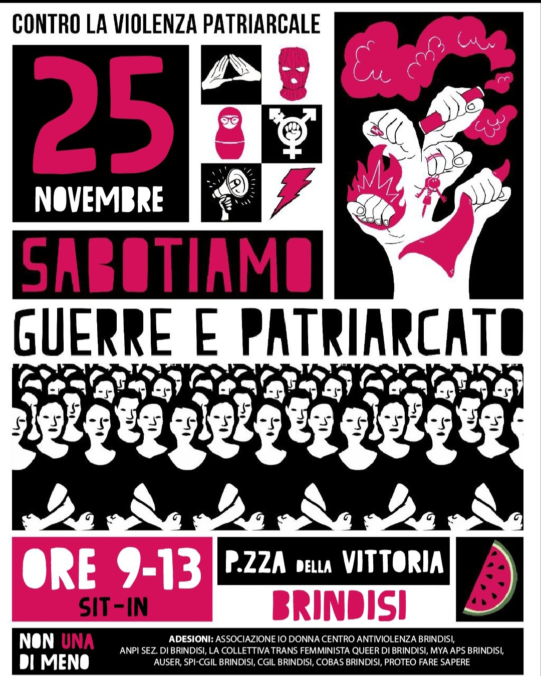 Vogliamo l’autodeterminazione dei corpi e dei popoli, ci opponiamo alla guerra come espressione massima della violenza patriarcale, alla militarizzazione, al riarmo e alla colonizzazione, forme estreme della stessa logica di dominio, che sta alla base del femminicidio e di ogni forma di violenza maschile contro le donne e di genere.