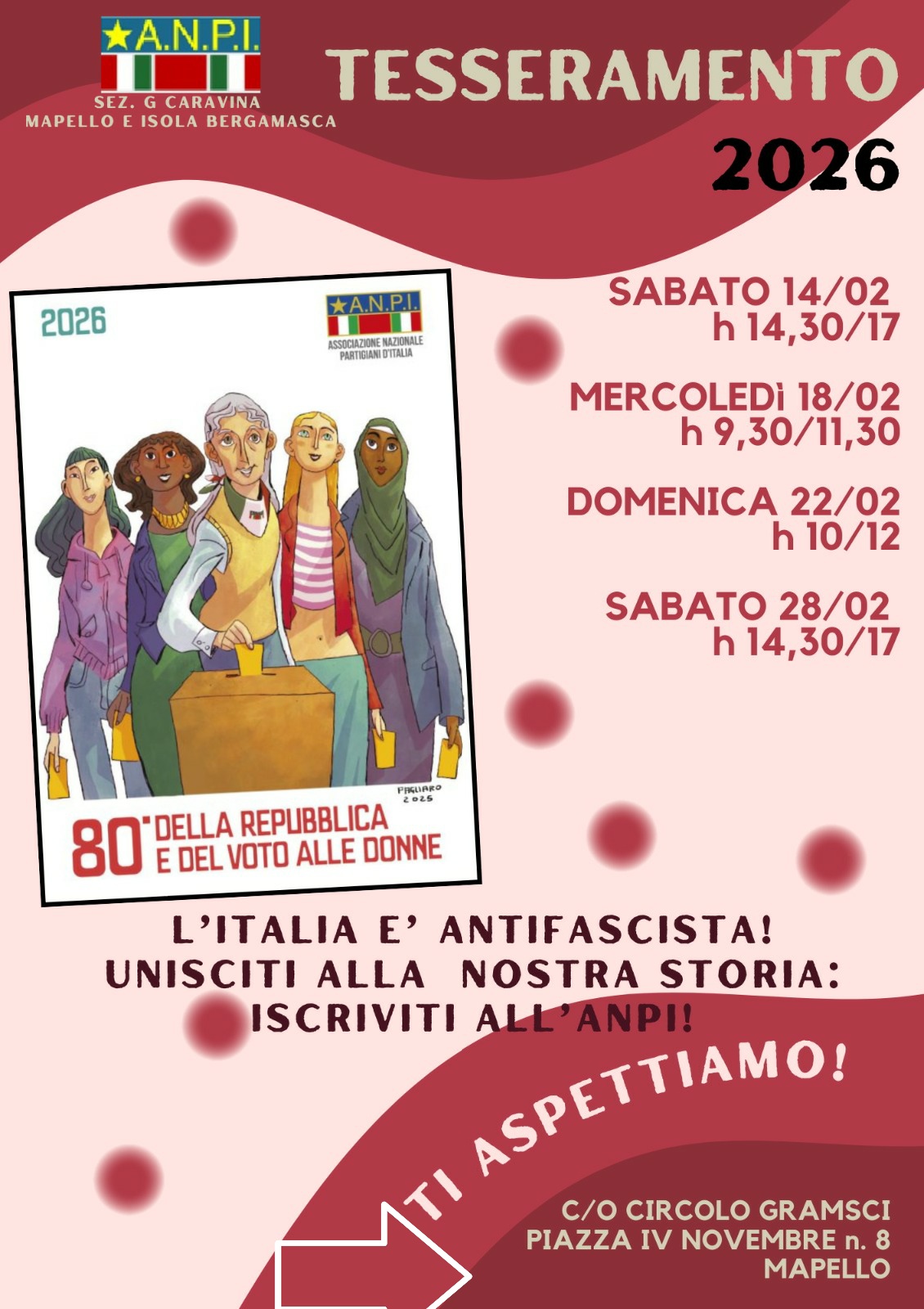 c/o Circolo Gramsci, piazza IV Novembre 8 - Mapello