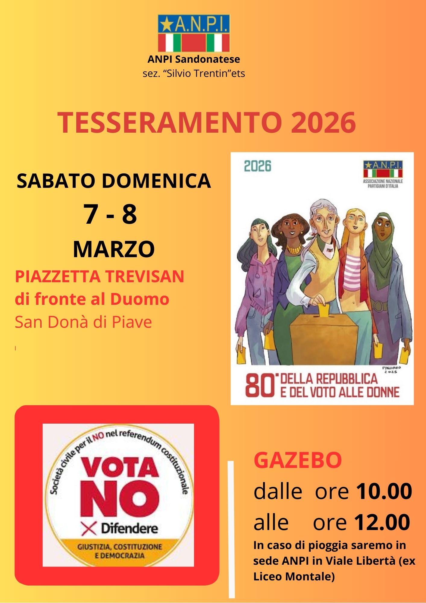 Piazzetta Trevisan di fronte al Duomo - San Donà di Piace (in caso di pioggia siamo in sede ANPI, viale Libertà 28)