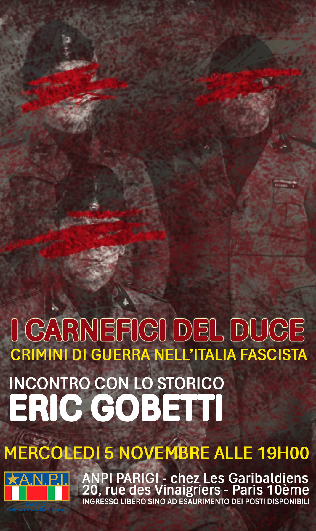 ore 19:00 - ANPI Parigi - chez Les Garibaldiens 20, rue de Vinaigriers - Paris 10ème