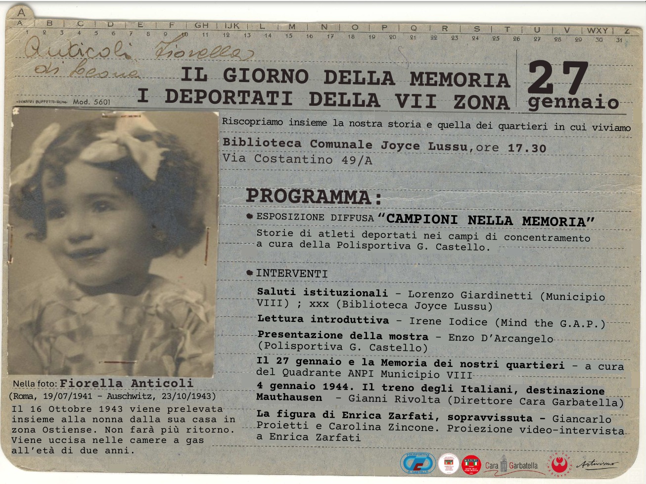 Il 27 gennaio e la Memoria dei nostri quartieri a cura del Quadrante ANPI Municipio VIII