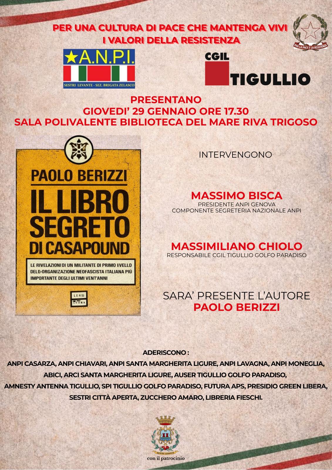 ANPI Sestri Levante e CGIL Tigullio Paradiso organizzano la presentazione del libro di Paolo Berizzi
