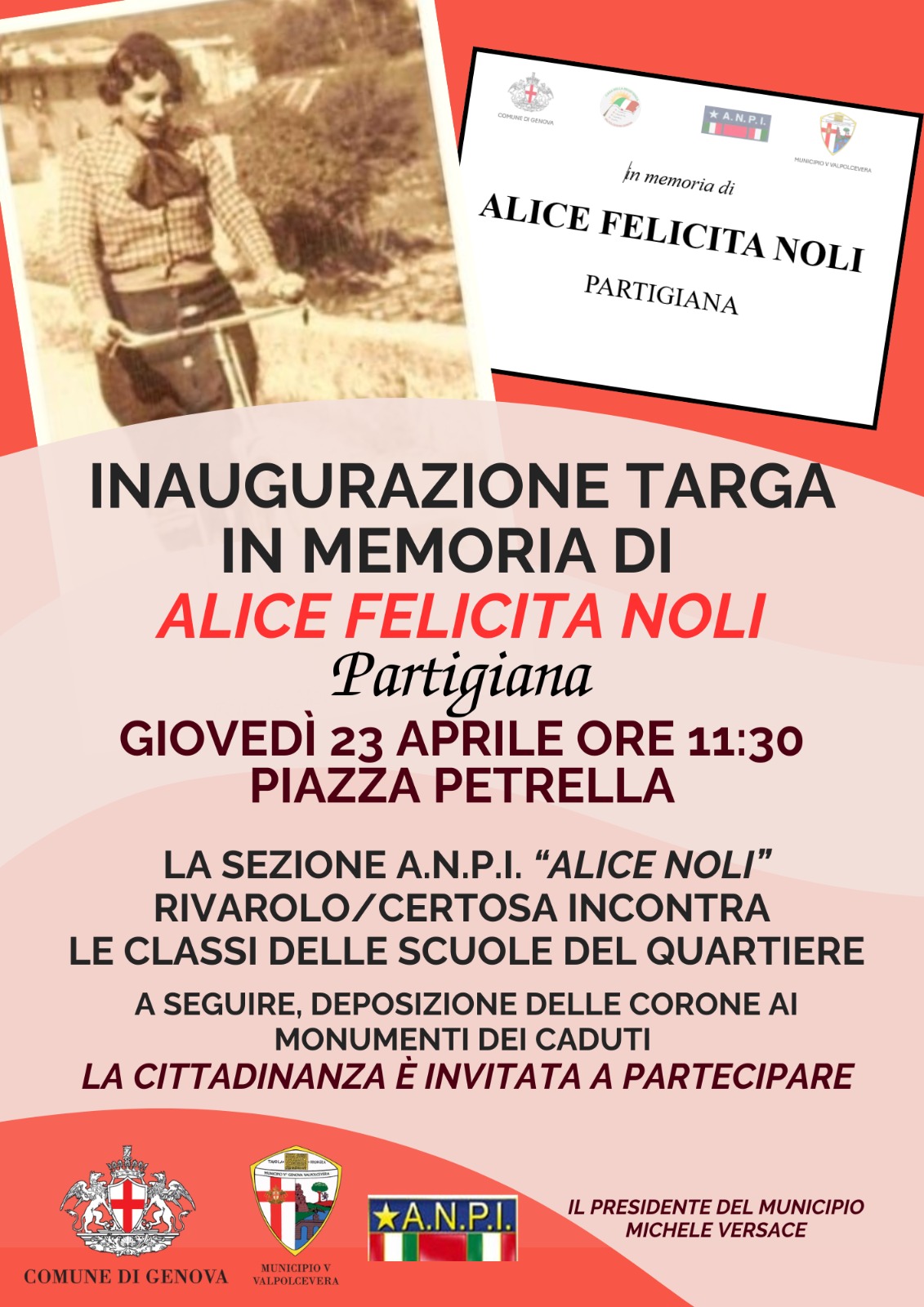 Inaugurazione Targa in memoria di Alice Felicita Noli, partigiana
