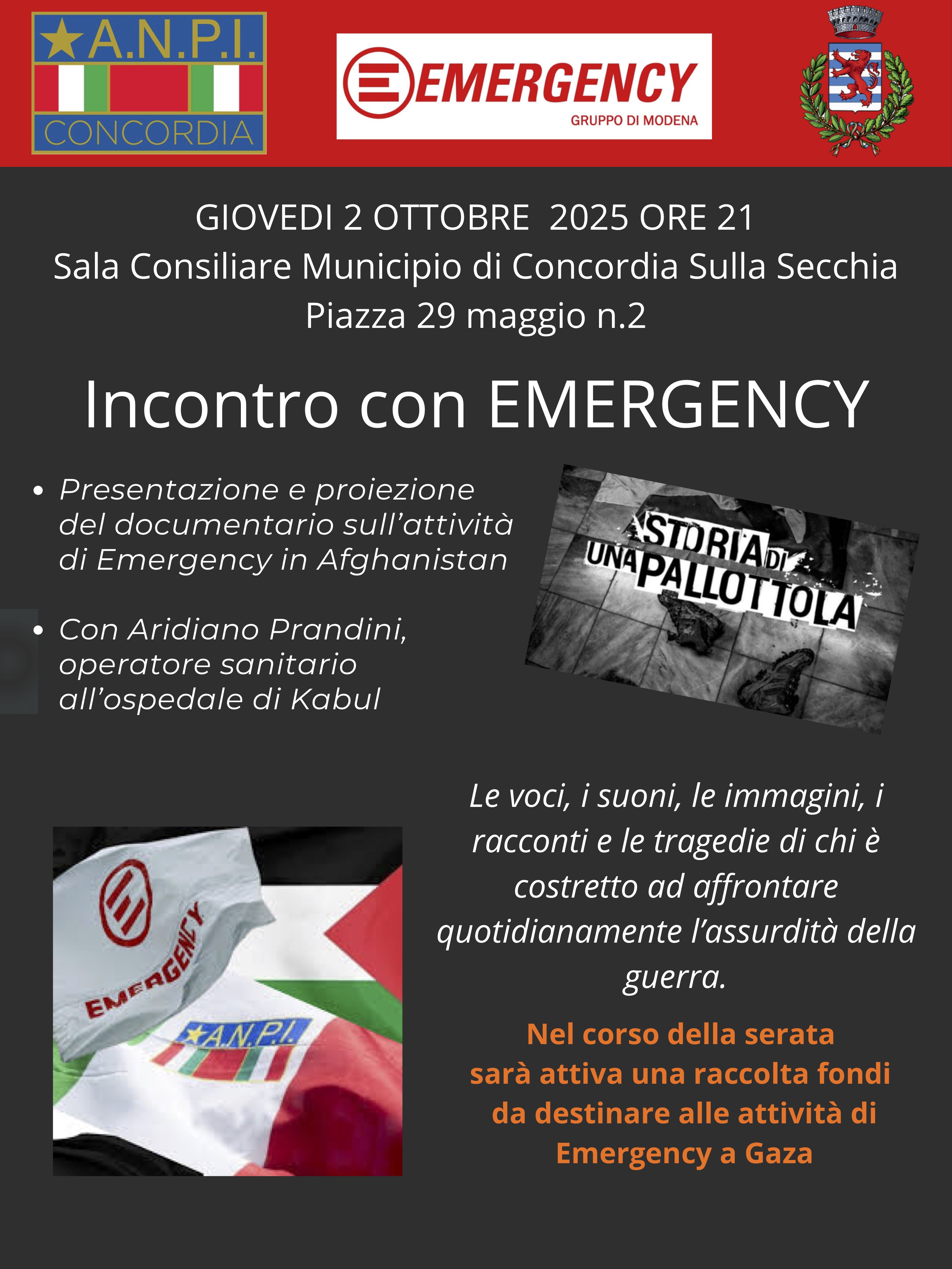 Nel corso della serata sarà attiva una raccolta fondi da destinare alle attività di Emergency a Gaza