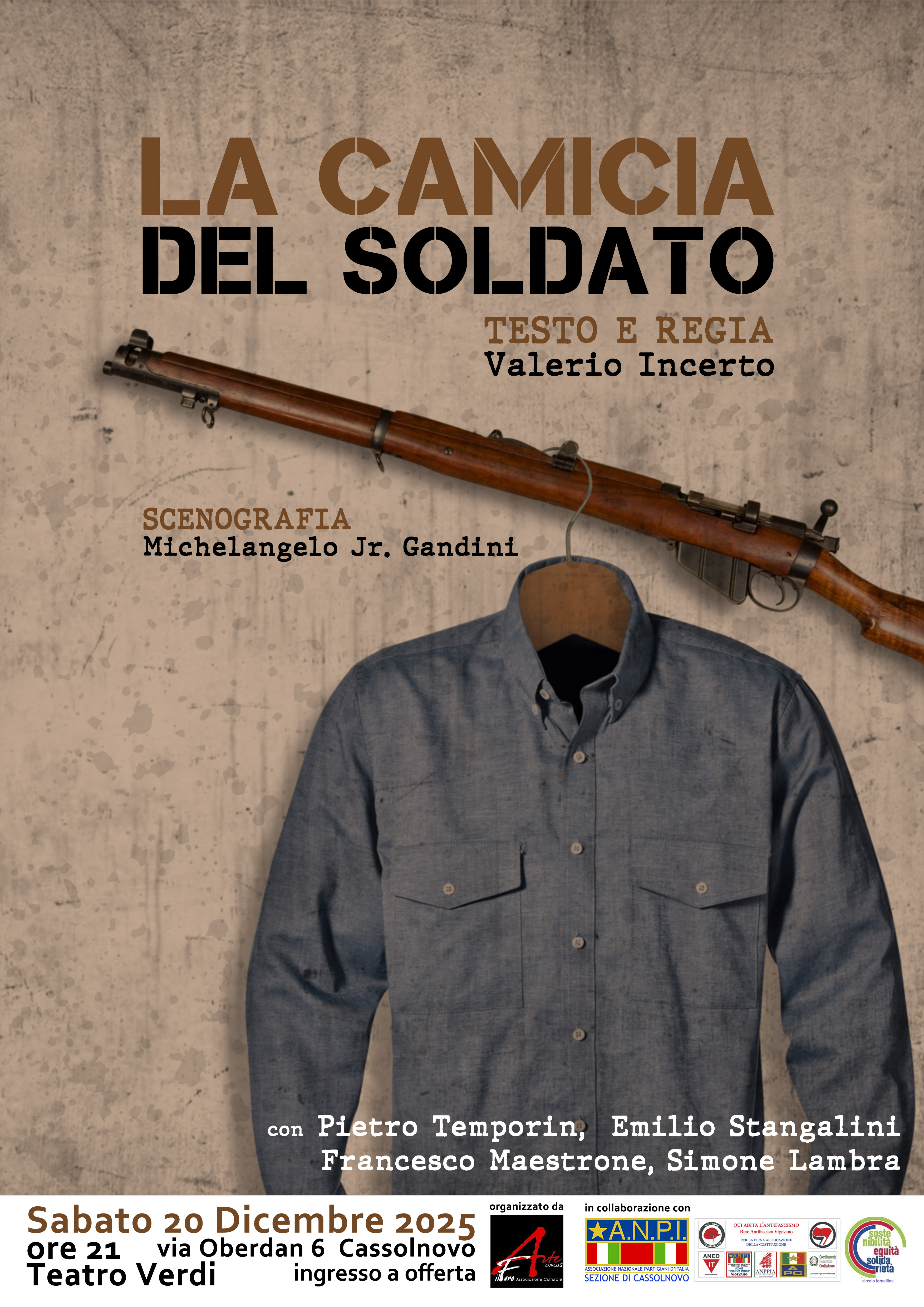 spettacolo teatrale che trova il filo rosso tra i conflitti di oggi e le guerra a casa nostra del passato, la Lomellina come l'Ucraina, la Palestina...