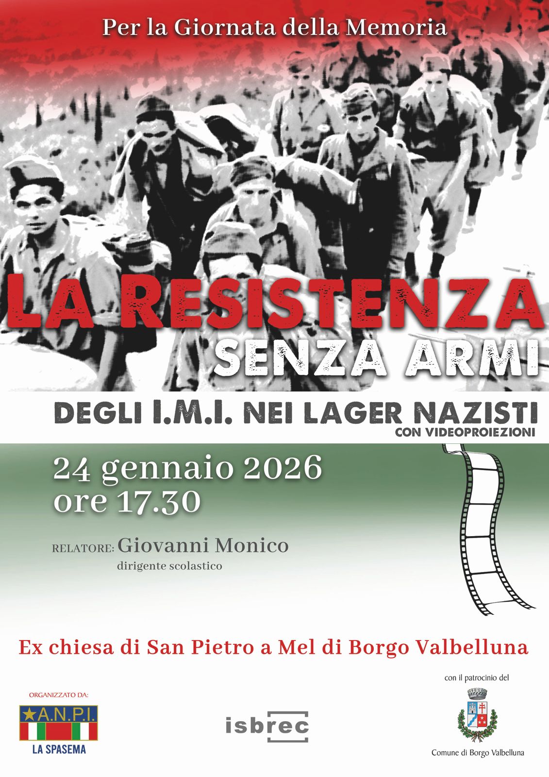 Nel corso dell’incontro, organizzato dall’Anpi “La Spasema” e dall’Isbrec con il patrocinio del Comune di Borgo Valbelluna, verrà proposta la videoproiezione di documenti filmati.