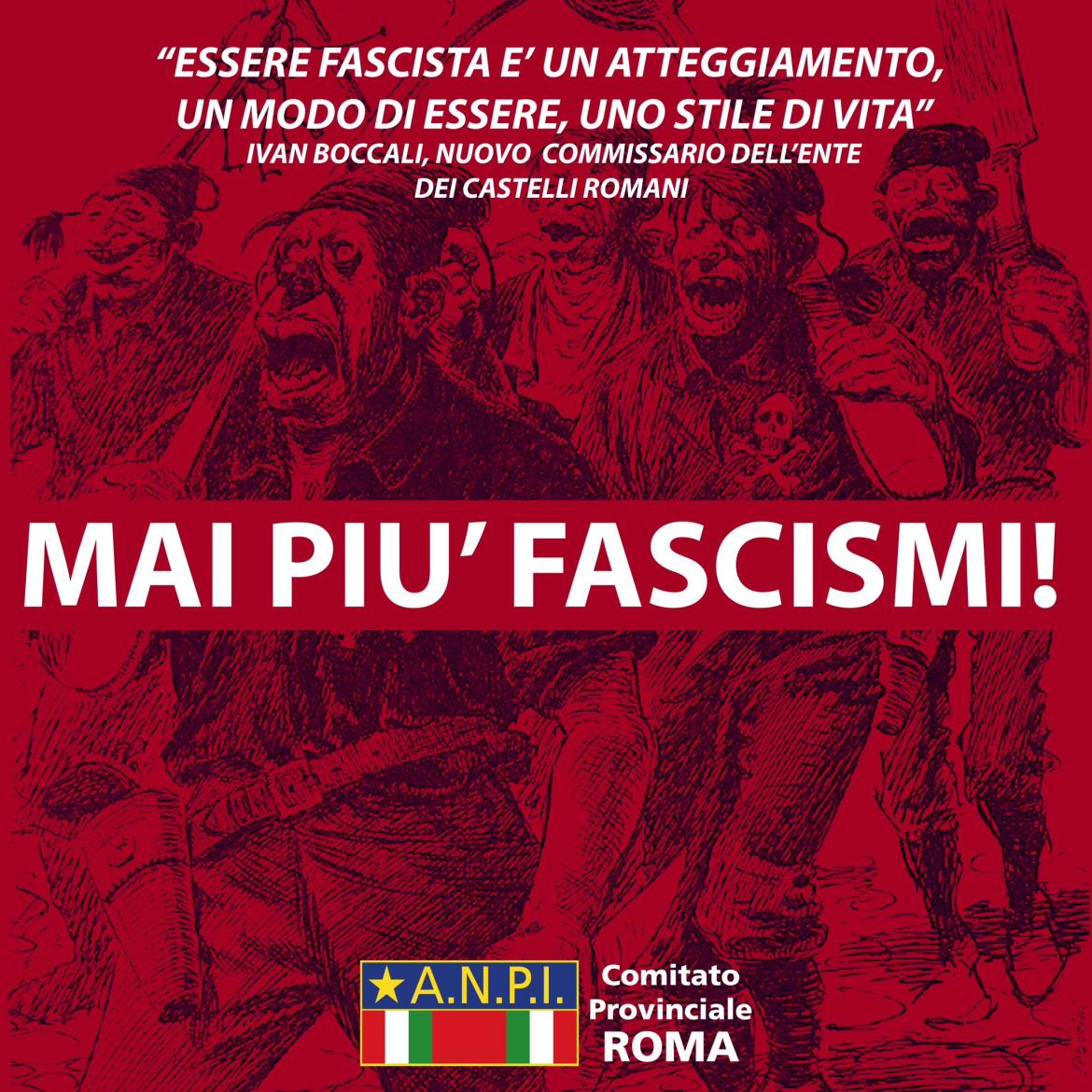 L'ANPI provinciale di Roma insieme alle sezioni ANPI dei Castelli Romani esprime la più grande preoccupazione per la nomina di Ivan Boccali a nuovo commissario dell’Ente dei Castelli Romani