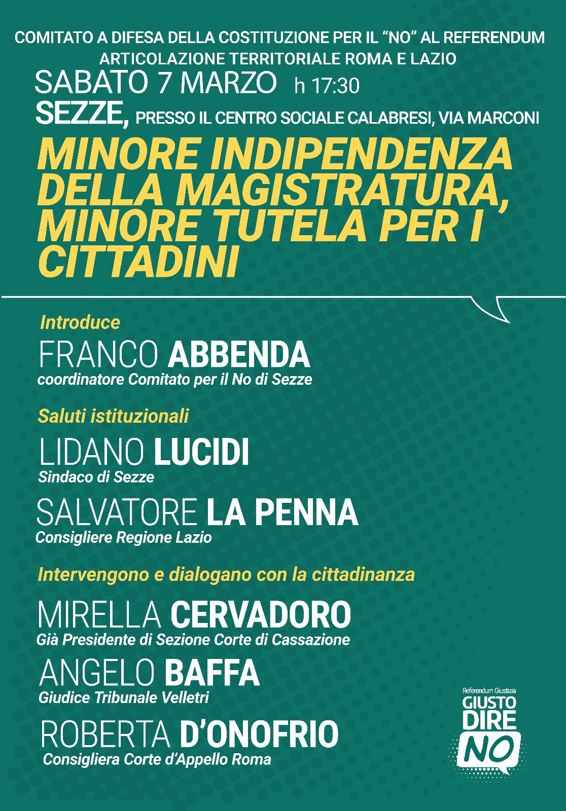 Franco Abbenda, Coordinatore Comitato per il NO di Sezze