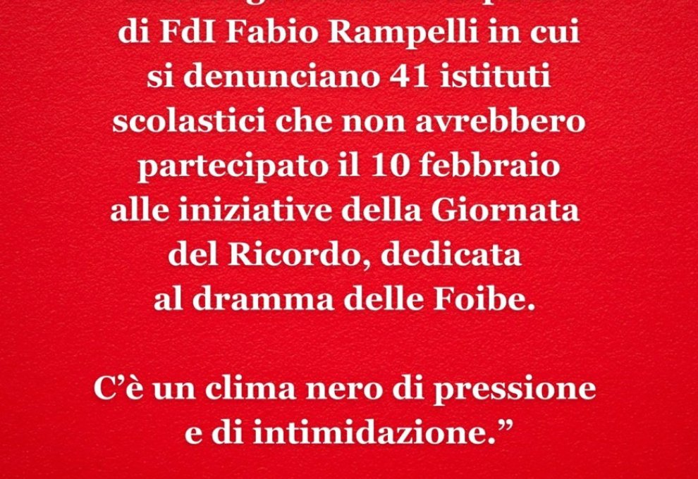 "Rivolgiamo un appello alle istituzioni perché le celebrazioni del 10 febbraio, Giorno del Ricordo, si svolgano nel…