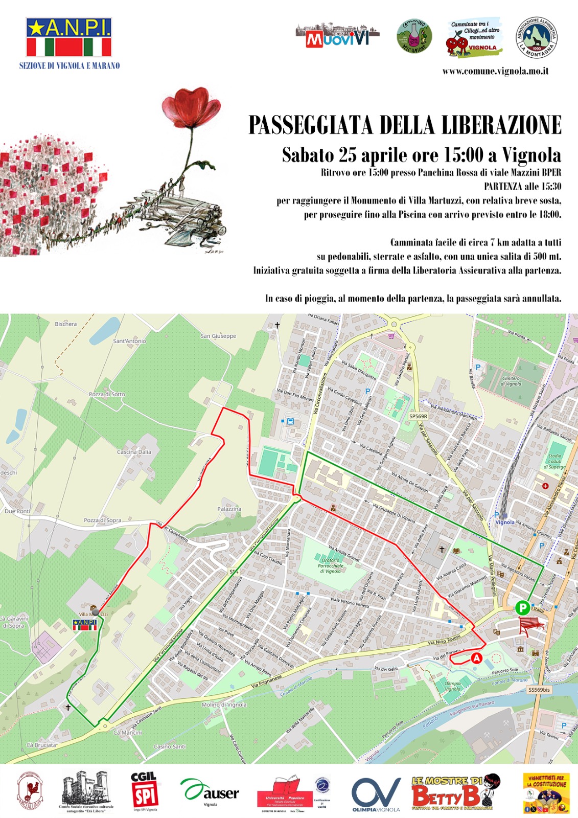 Eventi Passeggiata della Liberazione 25 Aprile 2026 Modena Sabato 25 aprile 2026 ore 15:00 a Vignola Itinerario allegato Allegati Locandina (552.67 KB)