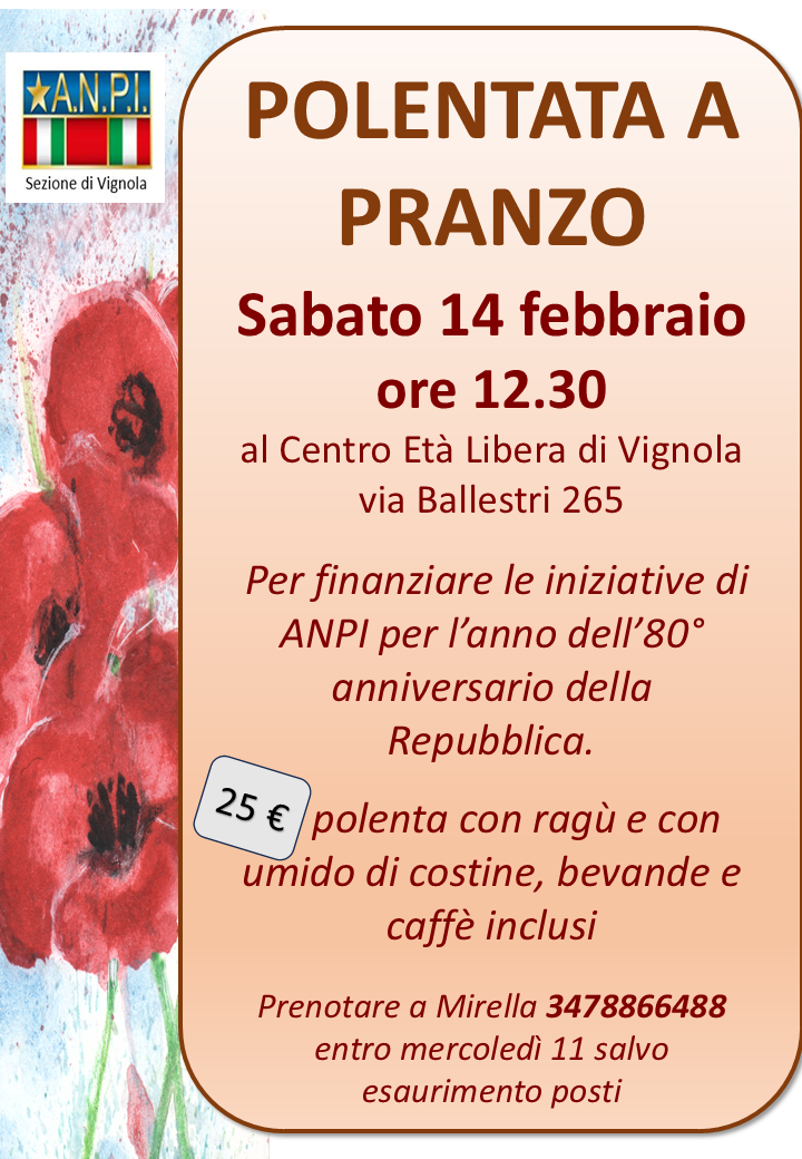 ore 12.30 - al Centro Età Libera, via Ballestri 265 - Vignola