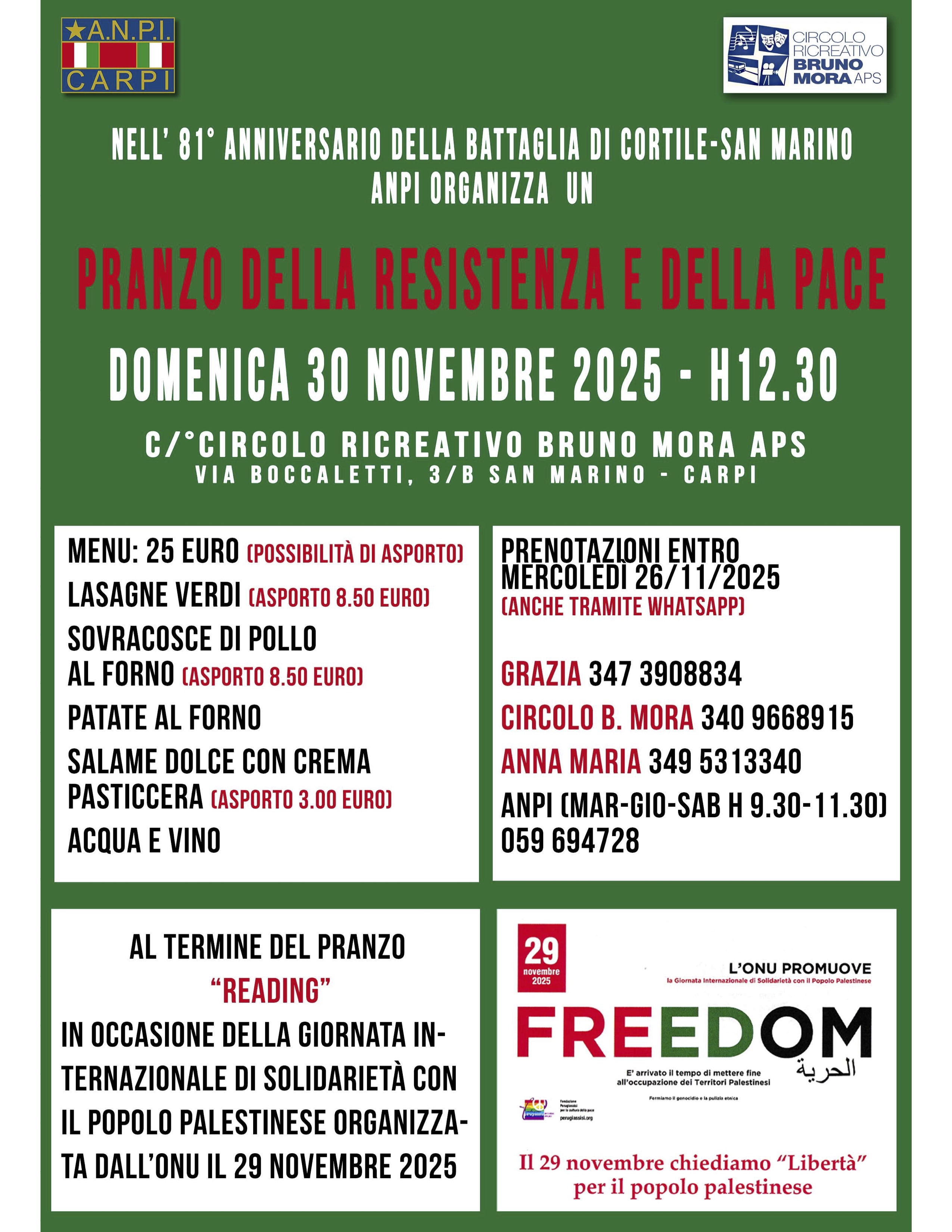 l'Anpi organizza un Pranzo della Resistenza e della pace