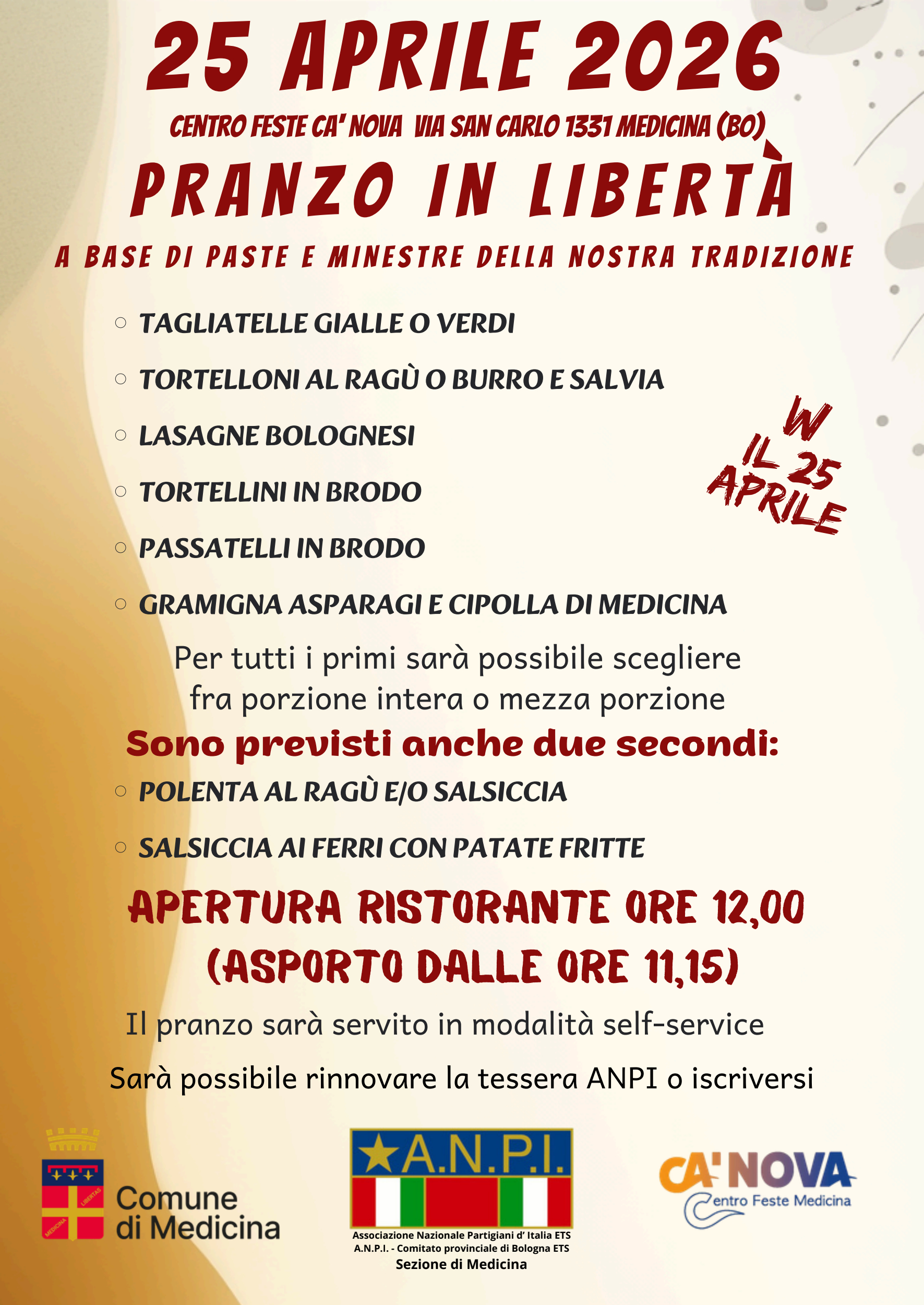 dalle ore 12:00 - Centro Feste Ca' Nova, via San Carlo 1331 - Medicina