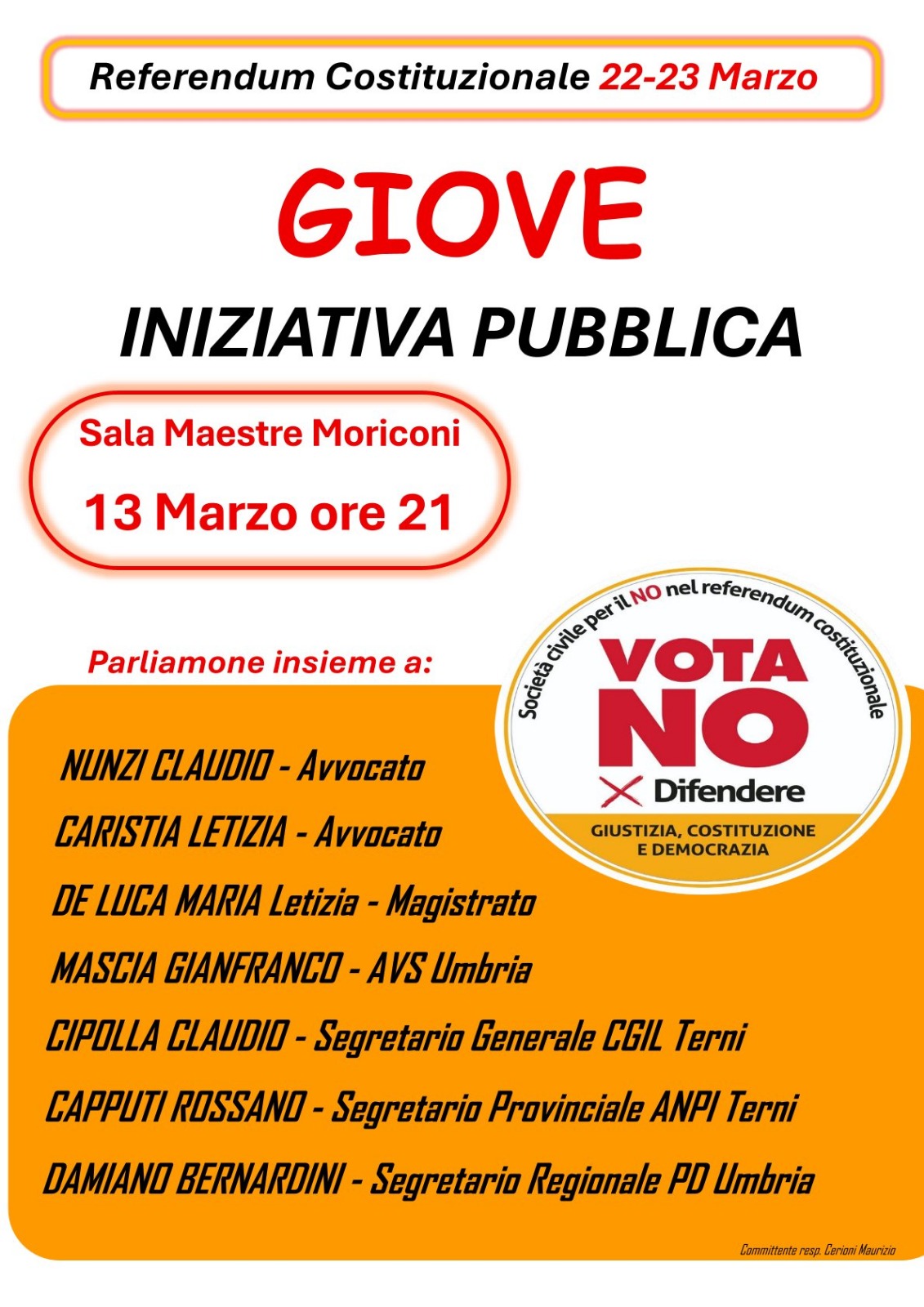 Referendum Costituzionale: iniziativa pubblica a Giove