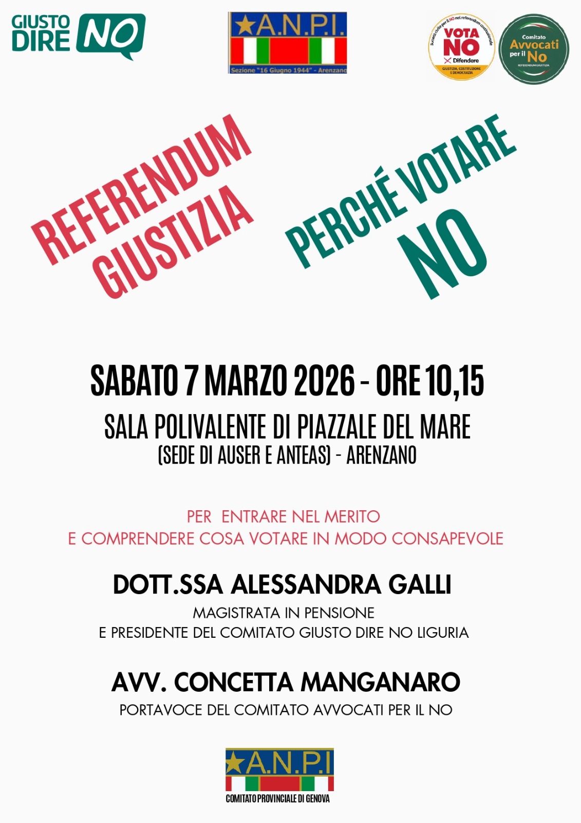 Dott.ssa Alessandra Galli, magistrata in pensione e Presidente del Comitato Giusto dire NO Liguria