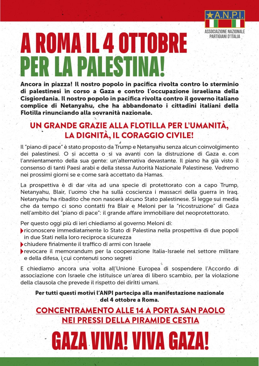 A ROMA IL 4 OTTOBRE PER LA PALESTINA!