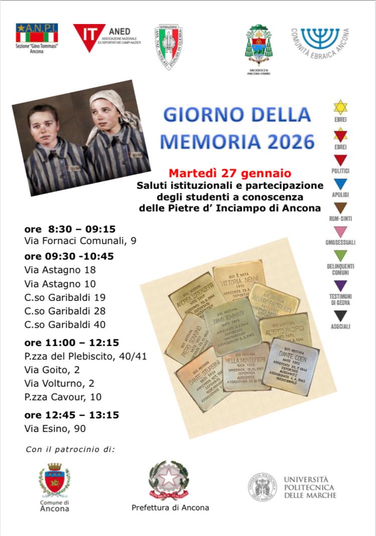con la partecipazione degli studenti degli Istituti comprensivi e delle sette scuole secondarie di 2° grado a conoscenza delle Pietre d’inciampo di Ancona