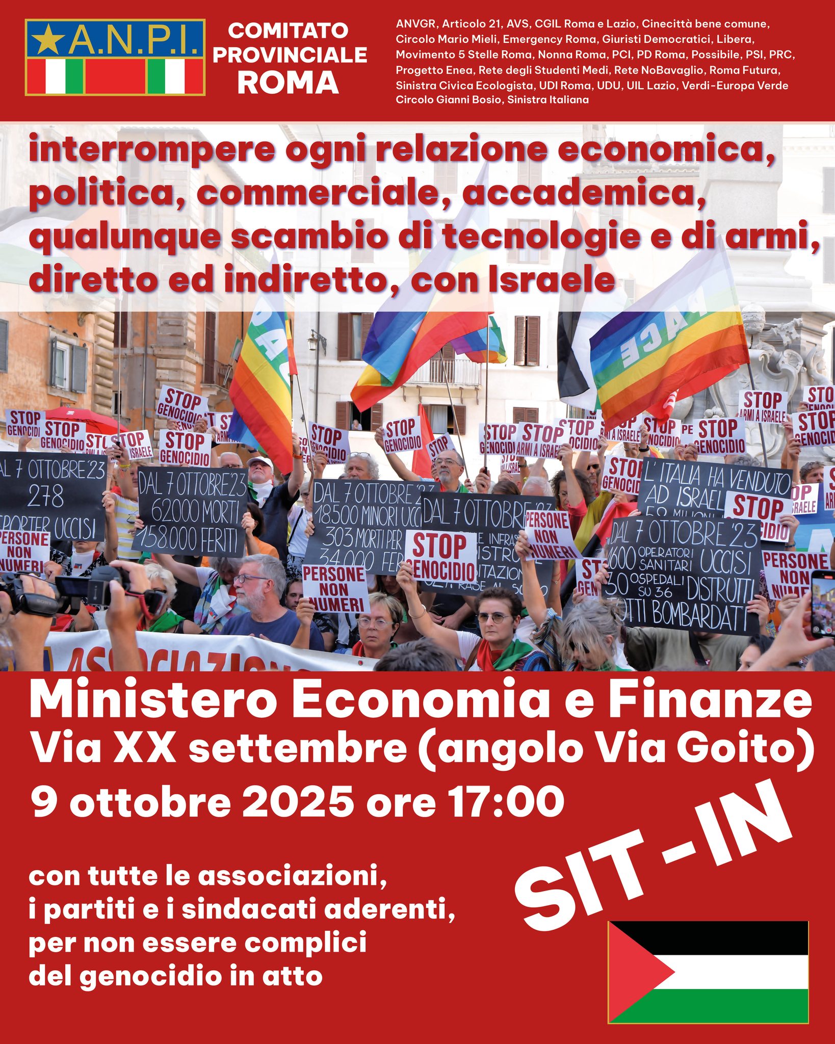L'ANPI provinciale di Roma, insieme alle realtà associative e politiche che hanno aderito, promuove un presidio davanti al MEF