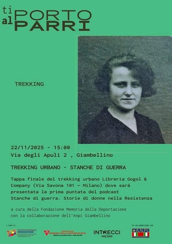 Tappa finale del trekking urbano Libreria Gogol & Company (Via Savona 101 - Milano) dove sarà presentata la prima puntata del podcast Stanche di guerra. Storia di donne nella Resistenza