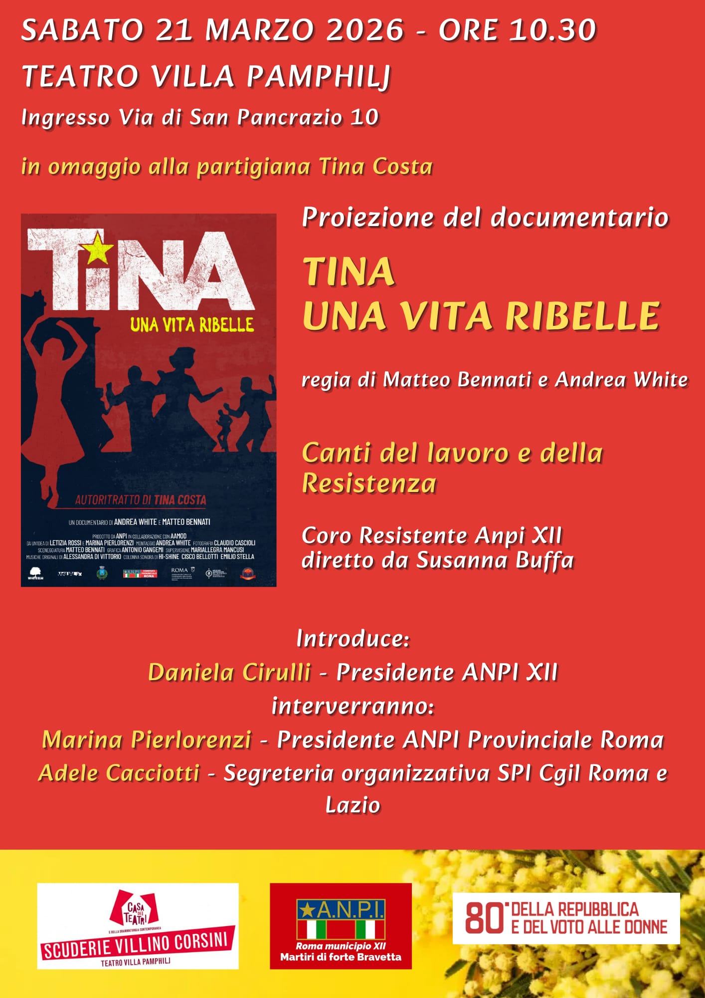Sabato 21 marzo 2026 ore 10:30 - Teatro Villa Pamphilj (ingresso Via di San Pancrazio 10 - Roma
