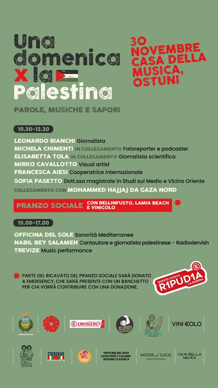 La vicenda palestinese sembra essere tornata nelle retrovie dell’attenzione pubblica ed invece è ancora viva e dolorosa. Perciò, in continuità con altre iniziative, invitiamo associazioni e cittadin3 a partecipare a Una domenica per la Palestina, il 30 novembre presso la Casa della Musica.