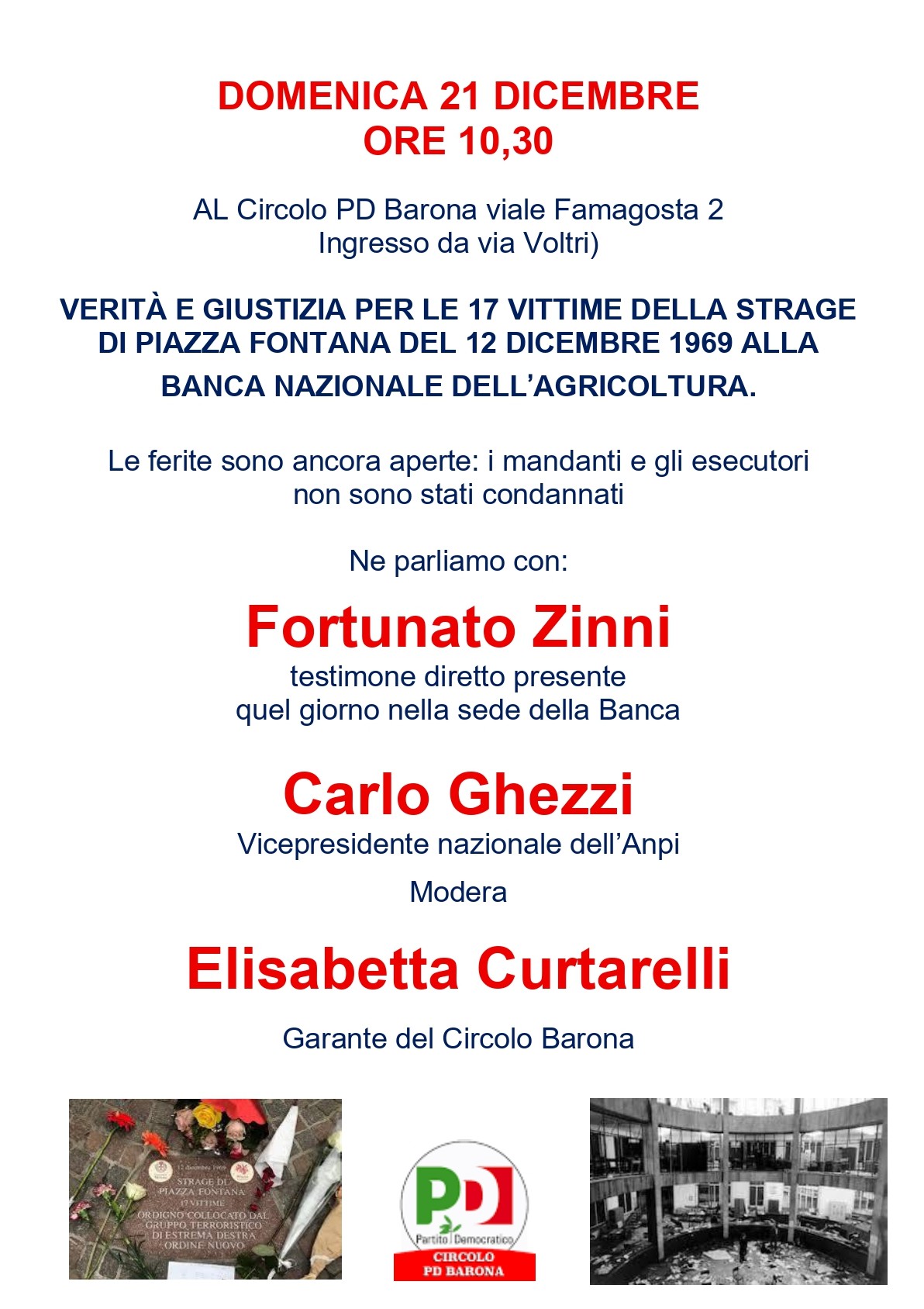 ore 10:30 - Circolo PD Barona, viale Famagosta 2 - Milano