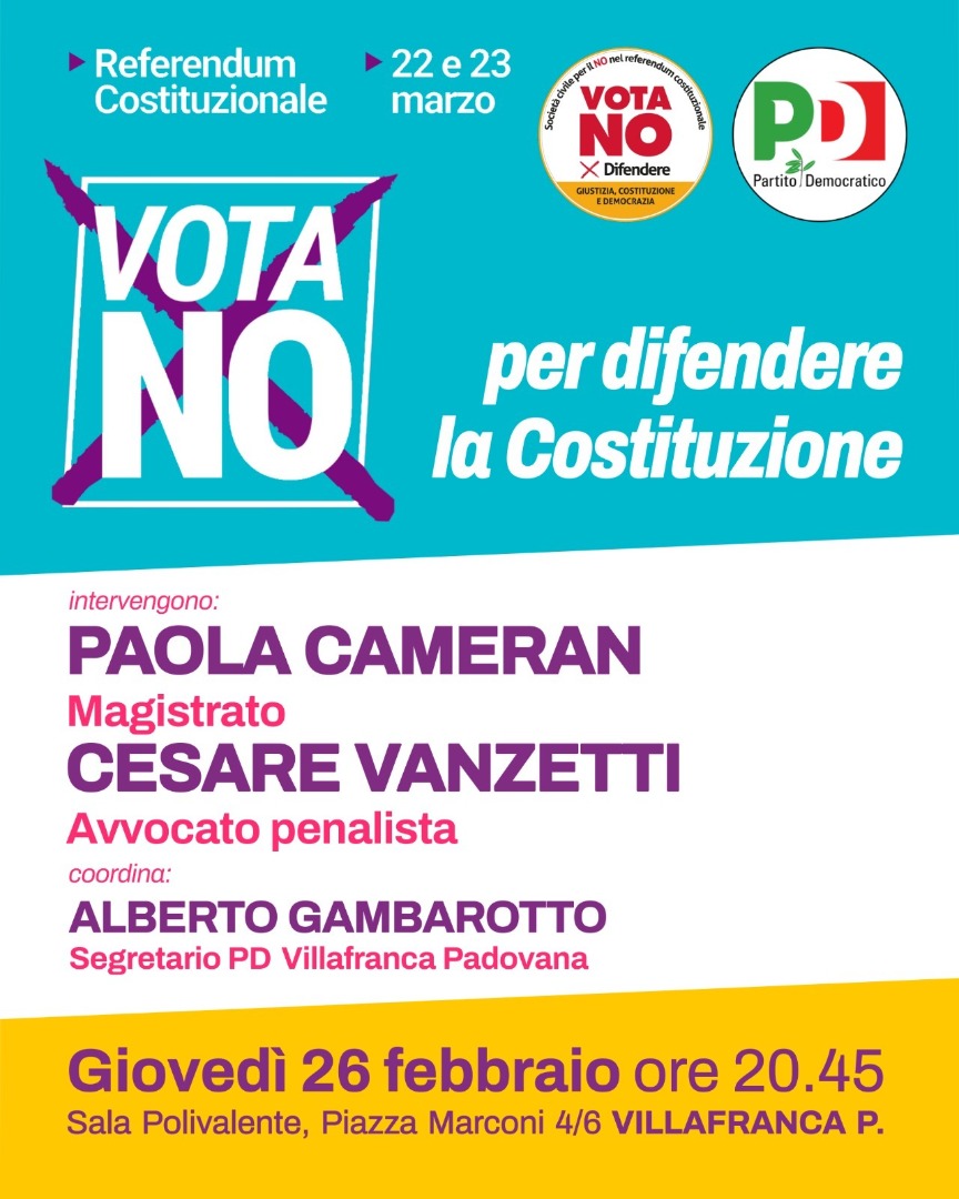 ore 20:45 - Sala Polivalente, Piazza Marconi 4/6 - Villafranca Padovana